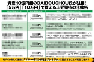 《元手200万→10億円のDAIBOUCHOU氏が厳選した大化け期待5銘柄》5万円、10万円で買える…