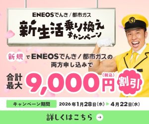 2026年1月28日(水)からは、『新生活乗り換えキャンペーン』がスタート。新規に『ENEOSでんき』を申し込んだ人を対象として、最大で月額500円(税込)を12か月間、合計最大6000円を割引する。