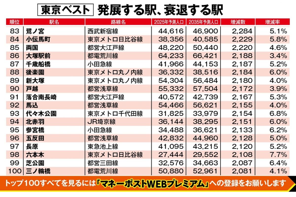 もっと読む→ 【東京都「10年後に不動産価格が上がる駅・下がる駅」ランキング】ベスト1~100位は「勝どき」「豊洲」ほか湾岸エリア、「護国寺」ほか副都心エリアへ乗り換えなし…