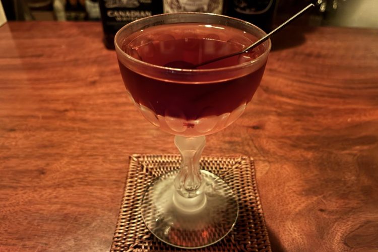 当初の予定通りのマンハッタンだが、田辺さんは、さっきのお客さんに出した男前のマンハッタンとは違う1杯を作ってくれた。ベースのウイスキーはライではなく、「アルバータスプリングス」というカナディアンウイスキー。これが、男前と対になっていた、やさしい感じのマンハッタンのベースなのだ。
